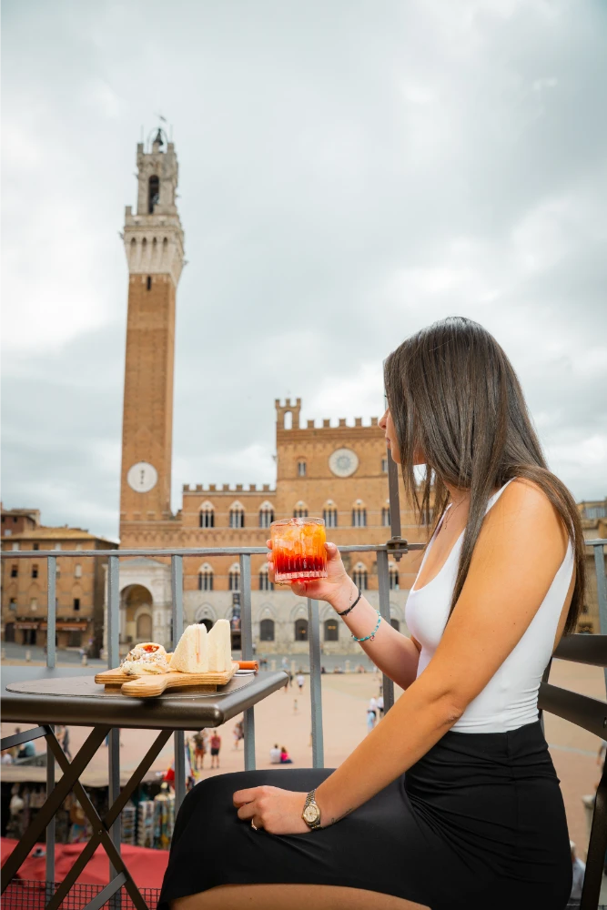 Sedersi sulla nostra terrazza non è solo una questione di vista: è vivere Piazza del Campo da una prospettiva davvero privilegiata.